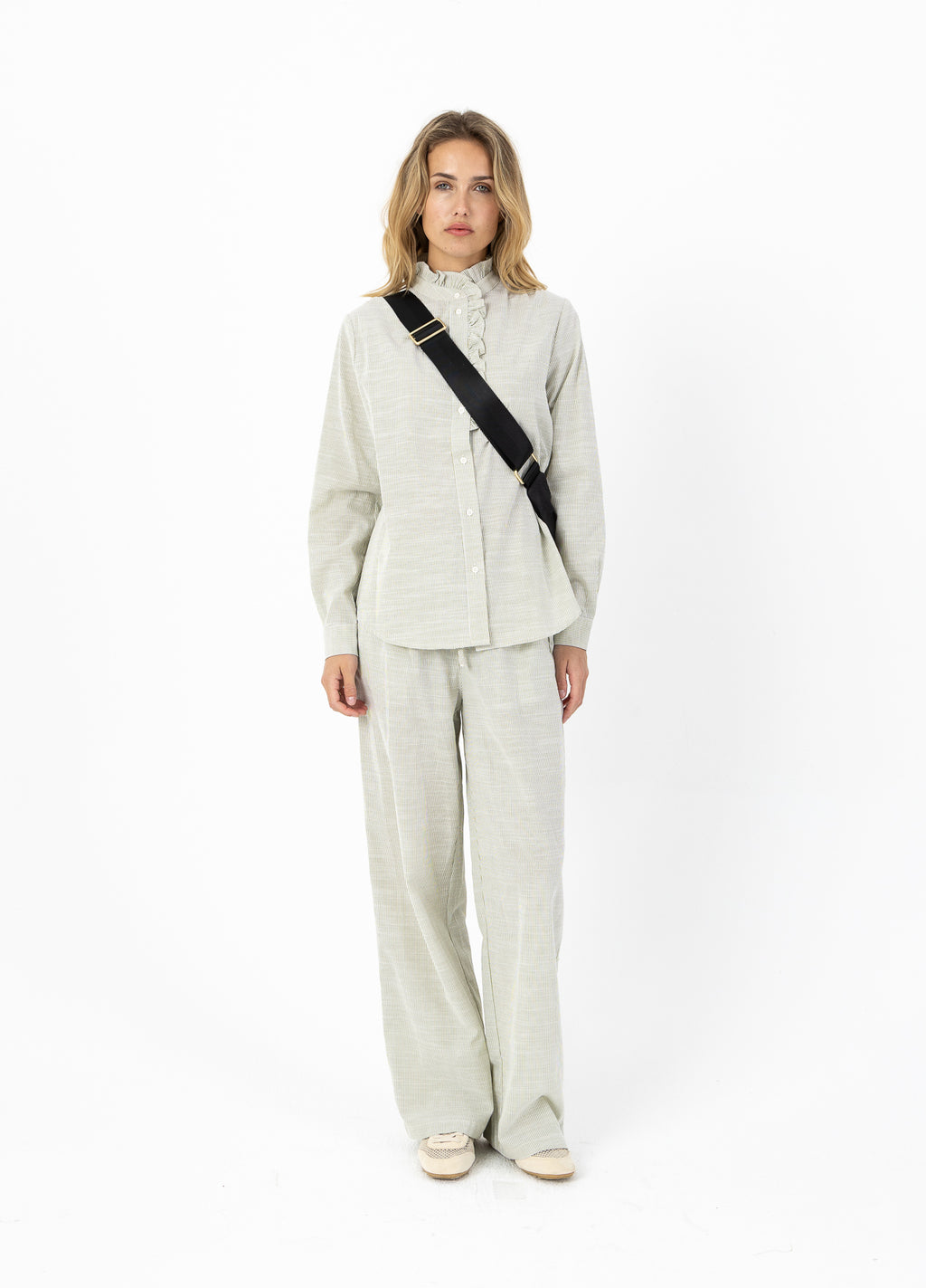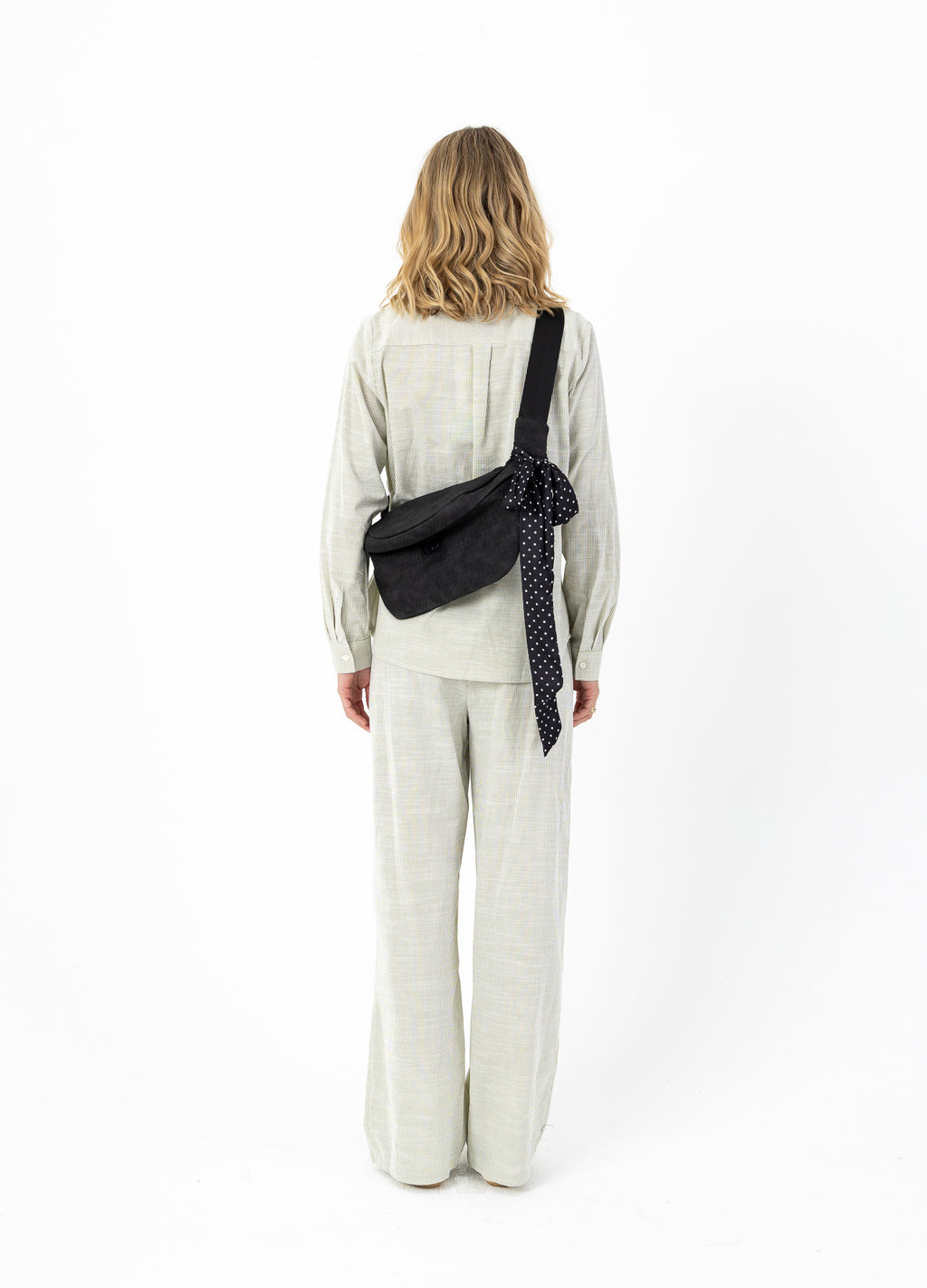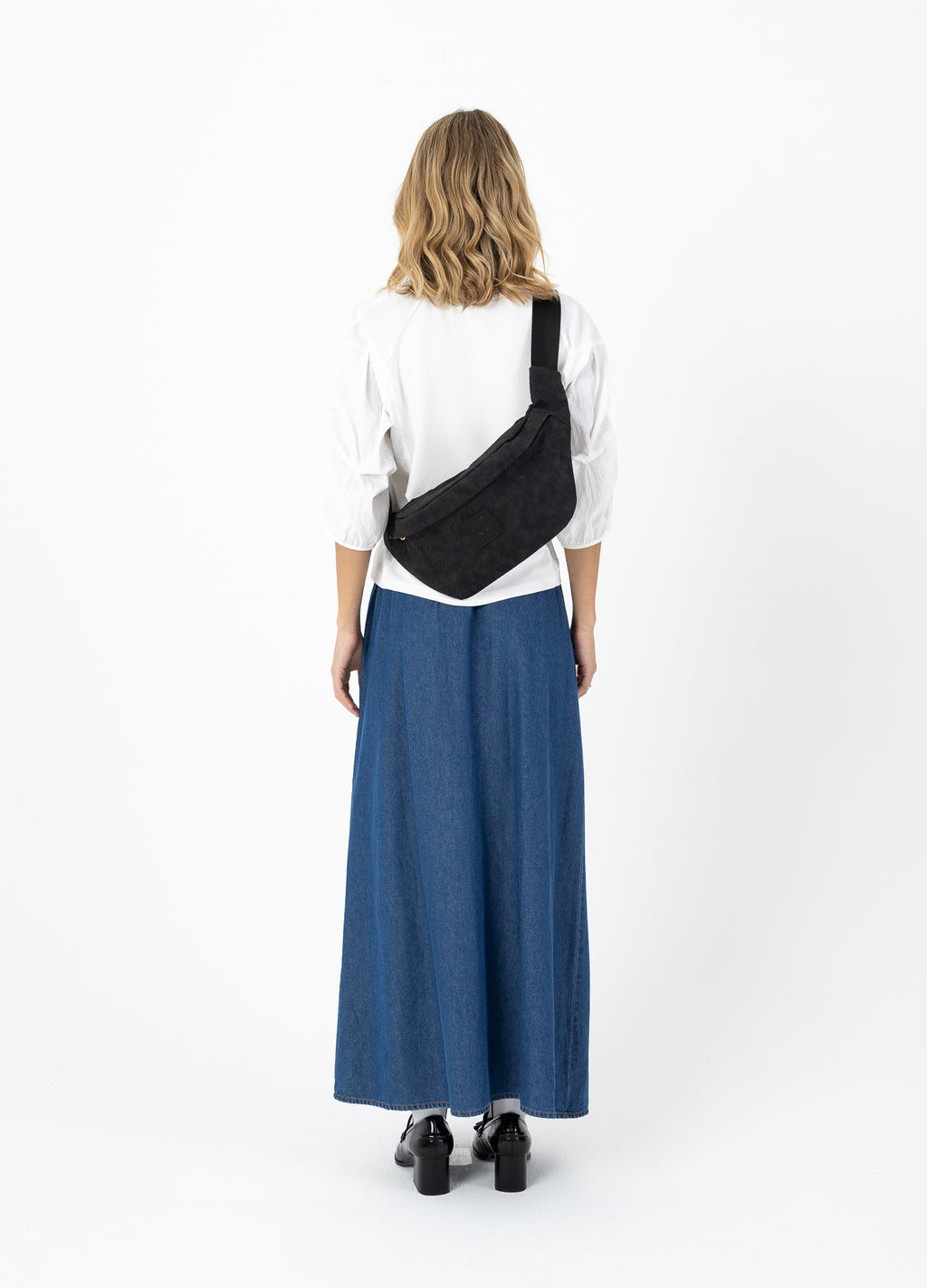 Het model is 173 cm lang en draagt maat S. Ze meet 84 cm rond de borst, 65 cm rond de taille en 96 cm rond de heupen.