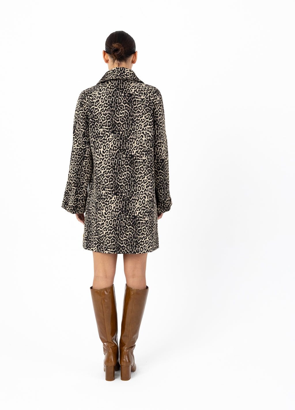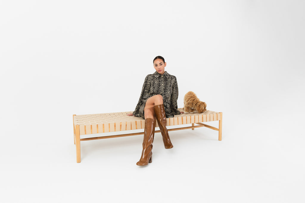 Het model is 173 cm lang en draagt maat S. Ze meet 84 cm rond de borst, 65 cm rond de taille en 96 cm rond de heupen.