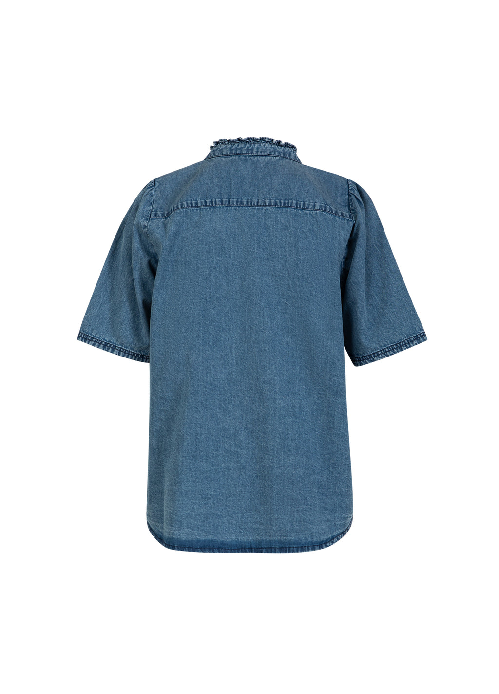 Het model is 173 cm lang en draagt maat S. Ze heeft een borstomvang van 84 cm, taille van 65 cm en heupen van 96 cm.