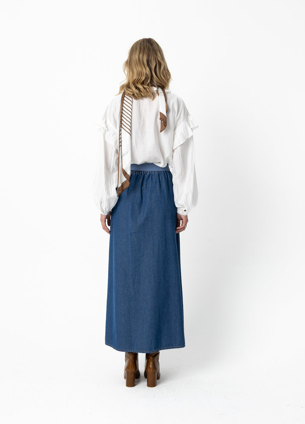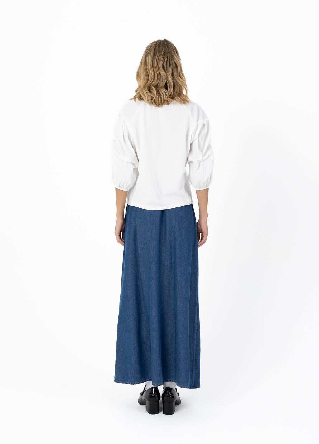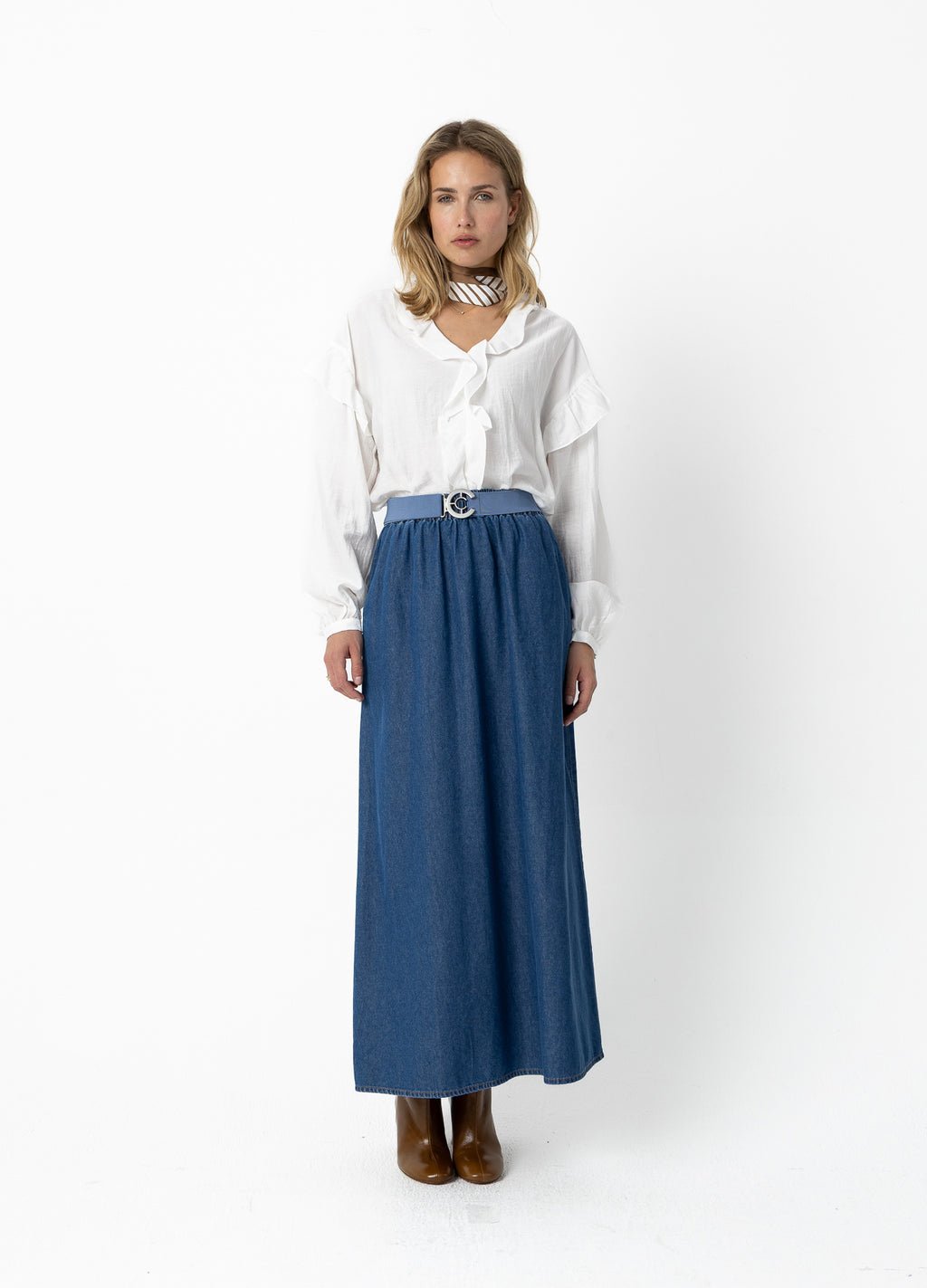 Het model is 173 cm lang en draagt maat S. Ze meet 84 cm rond de borst, 65 cm rond de taille en 96 cm rond de heupen.