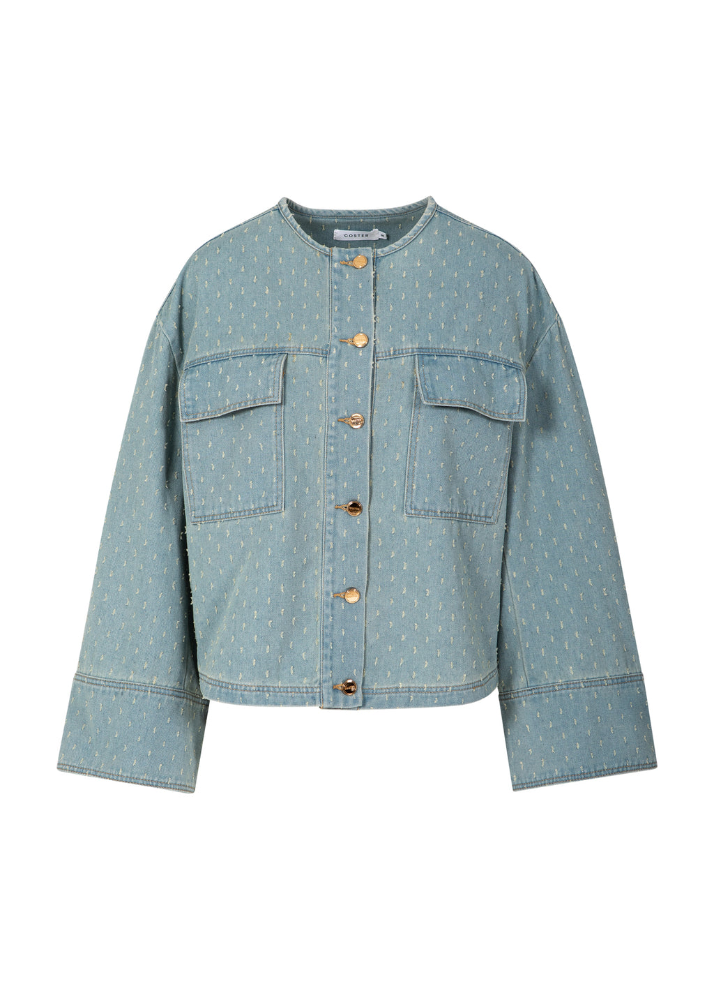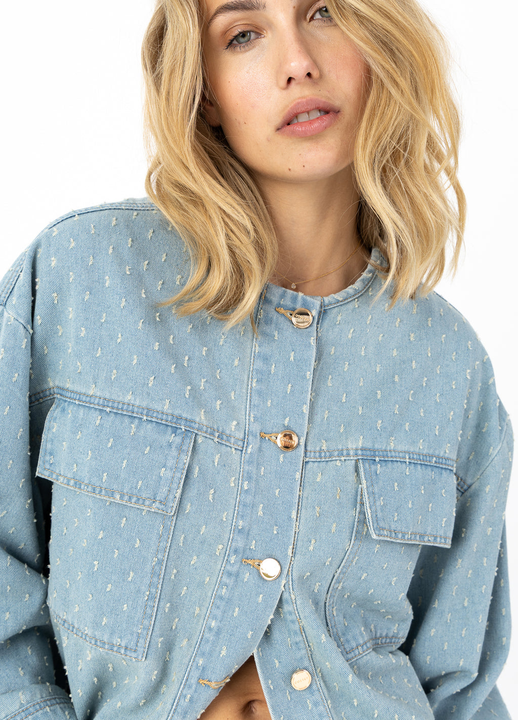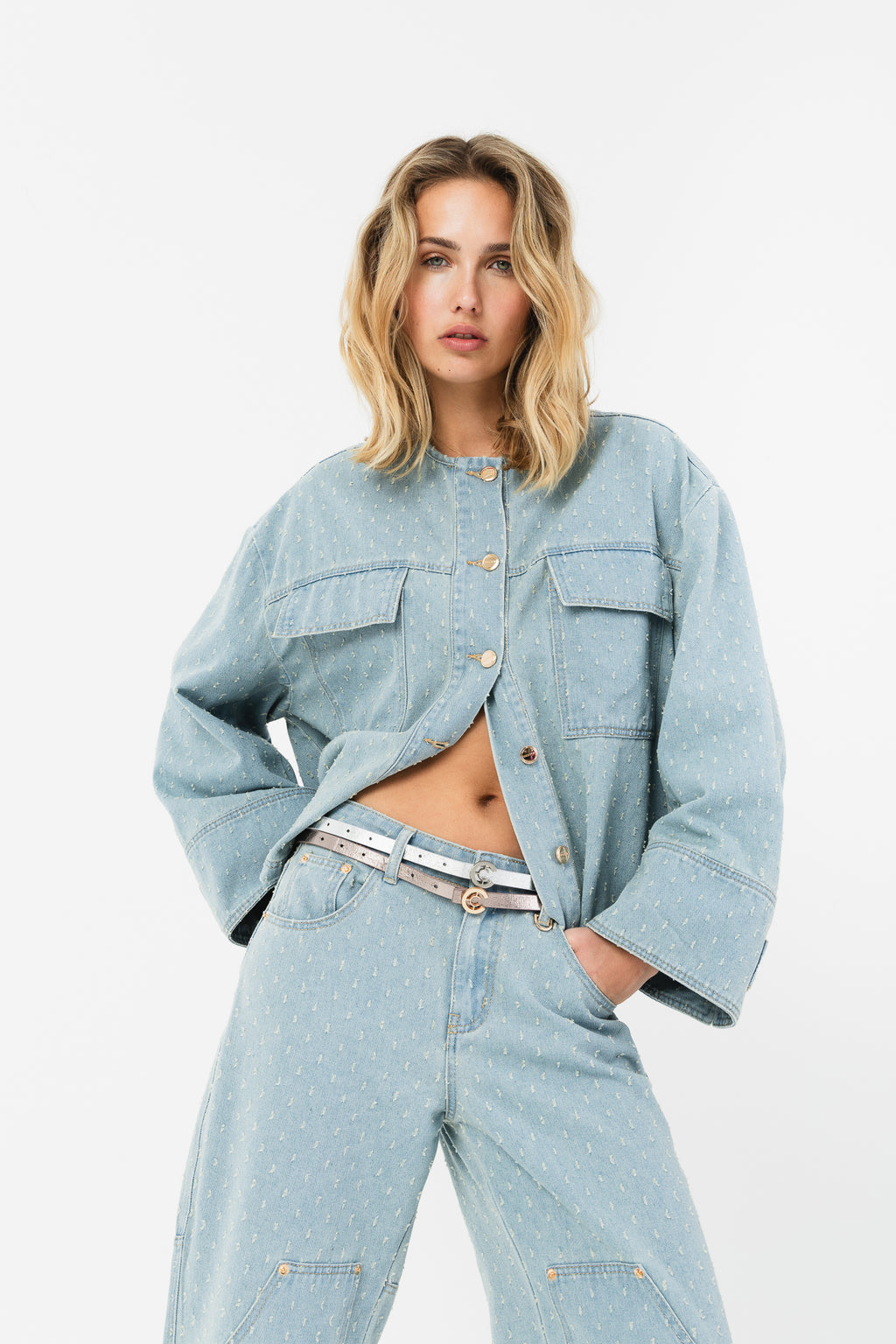 Het model is 173 cm lang en draagt maat S. Ze meet 84 cm rond de borst, 65 cm rond de taille en 96 cm rond de heupen.