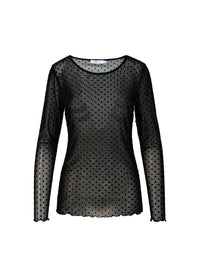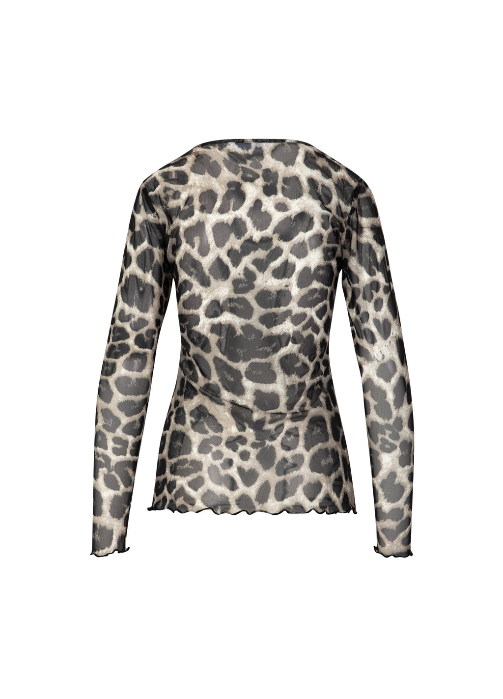 Het model is 173 cm lang en draagt maat S. Ze heeft een borstomvang van 84 cm, een tailleomvang van 65 cm en een heupomvang van 96 cm.