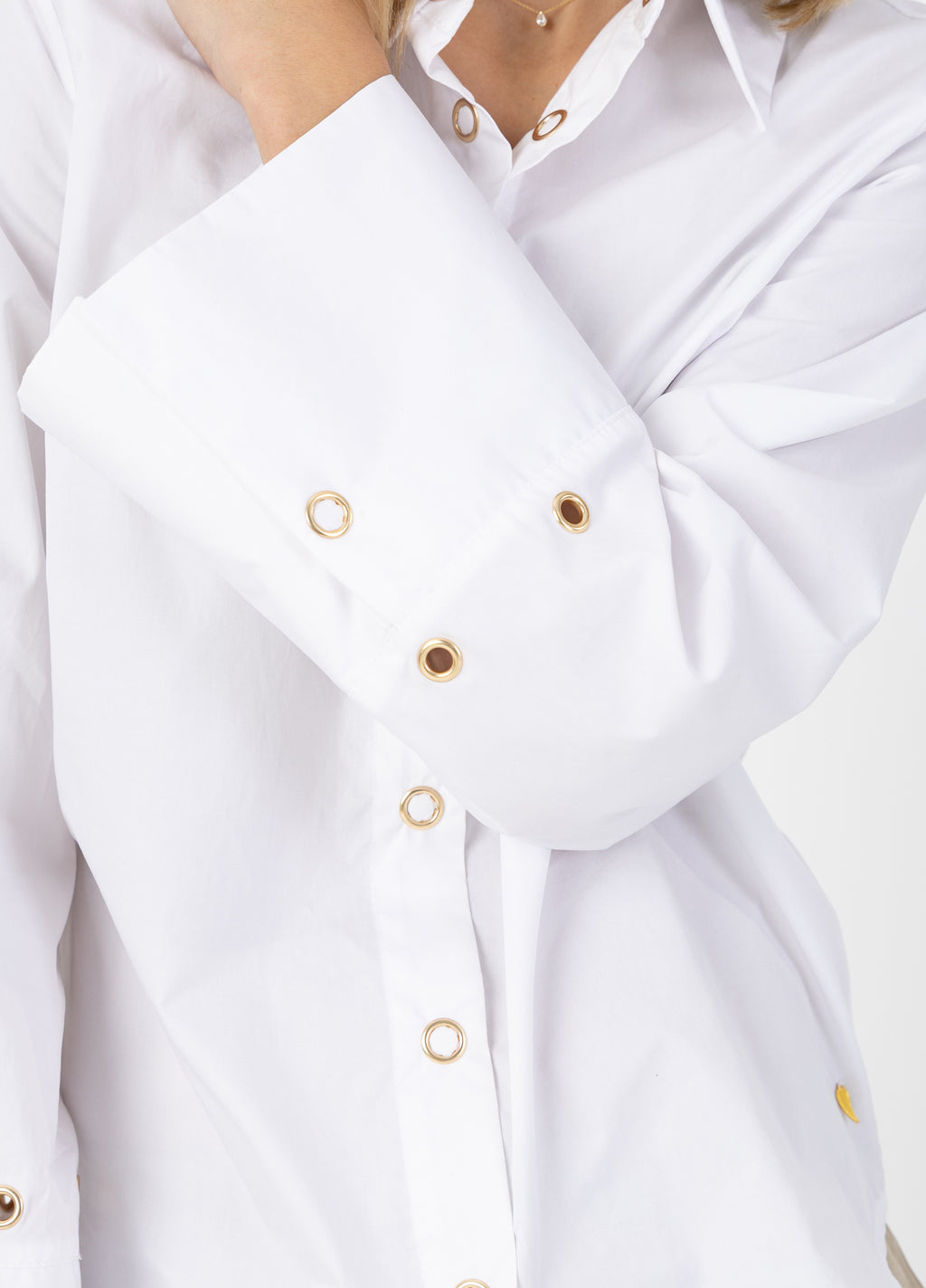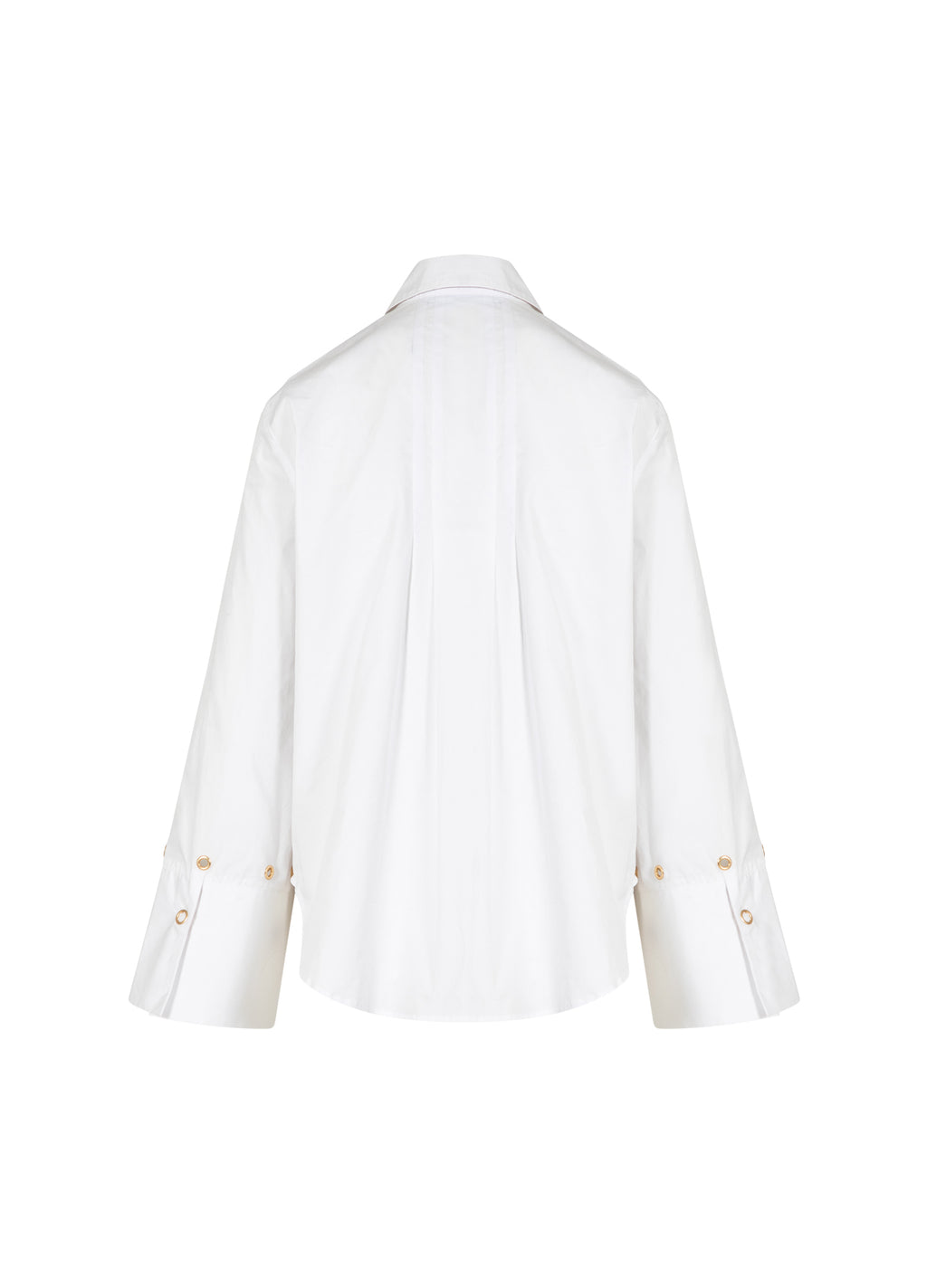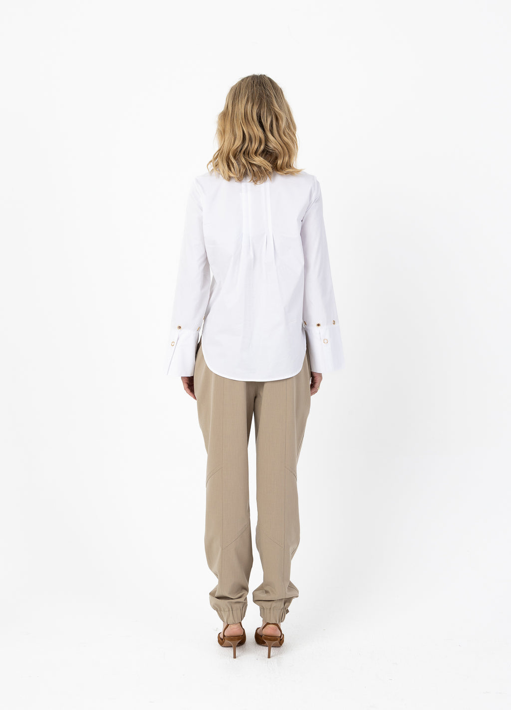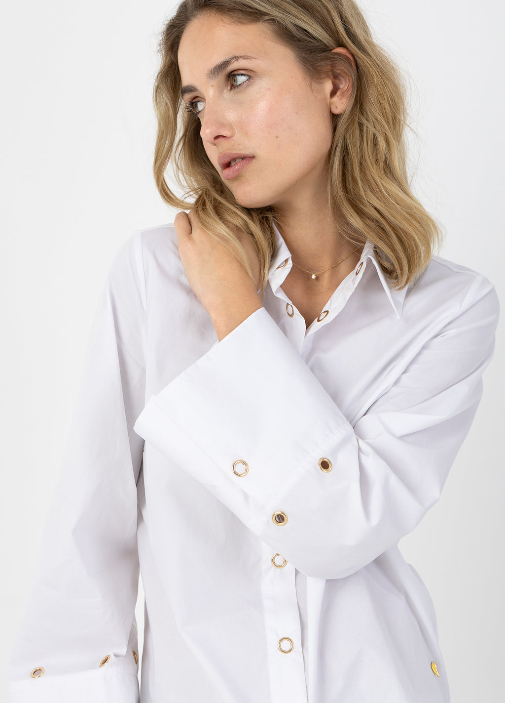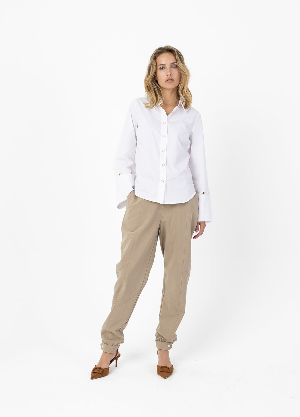 Het model is 173 cm lang en draagt maat S. Ze meet 84 cm rond de borst, 65 cm rond de taille en 96 cm rond de heupen.