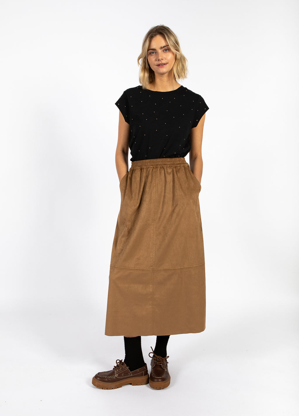 Het model is 176 cm lang en draagt maat S. Ze meet 81 cm rond de borst, 63 cm rond de taille en 95 cm rond de heupen.