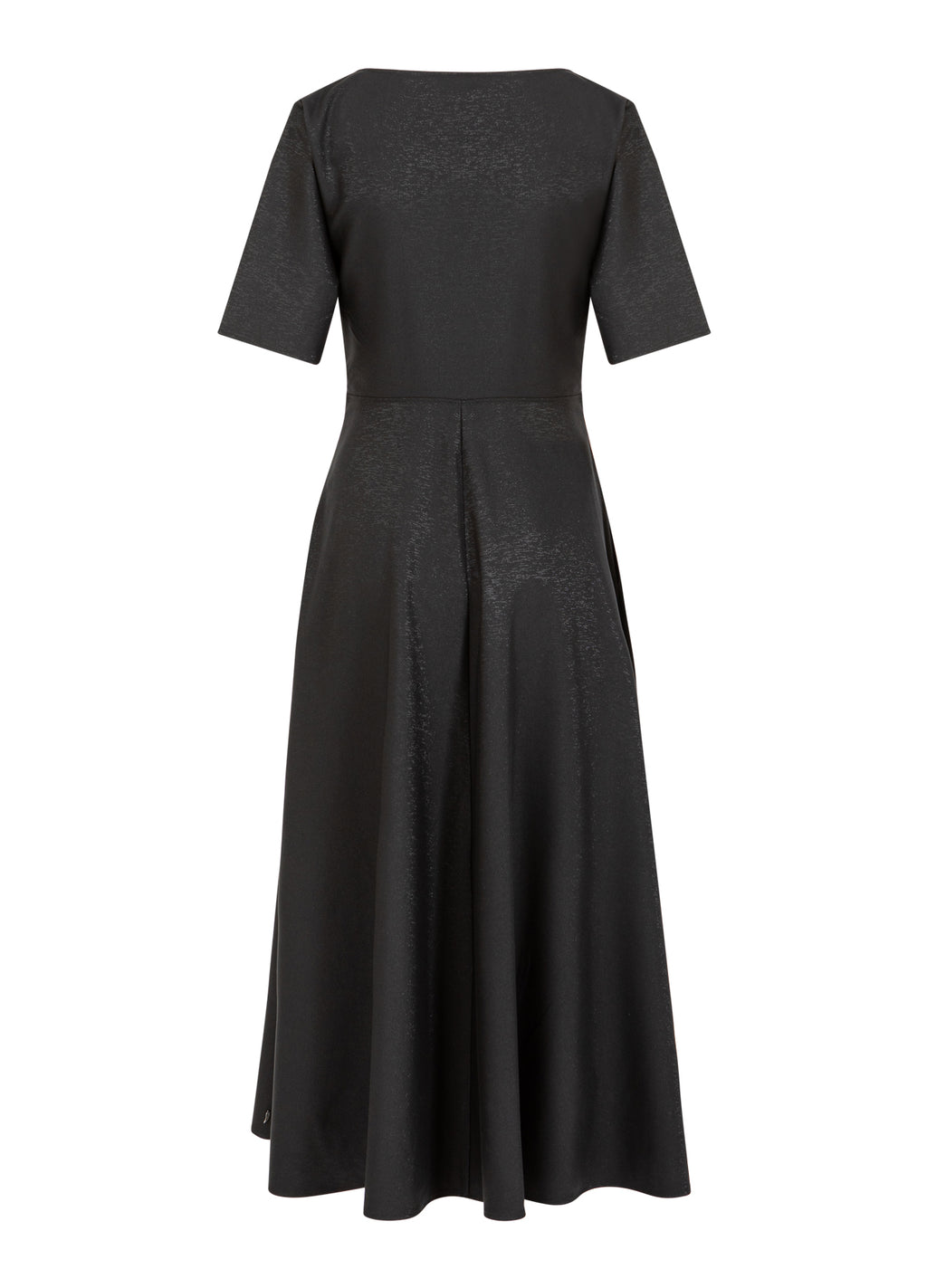 Het model is 182 cm lang en draagt maat S. Haar buste is 82 cm, taille 61 cm en heupen 93 cm.