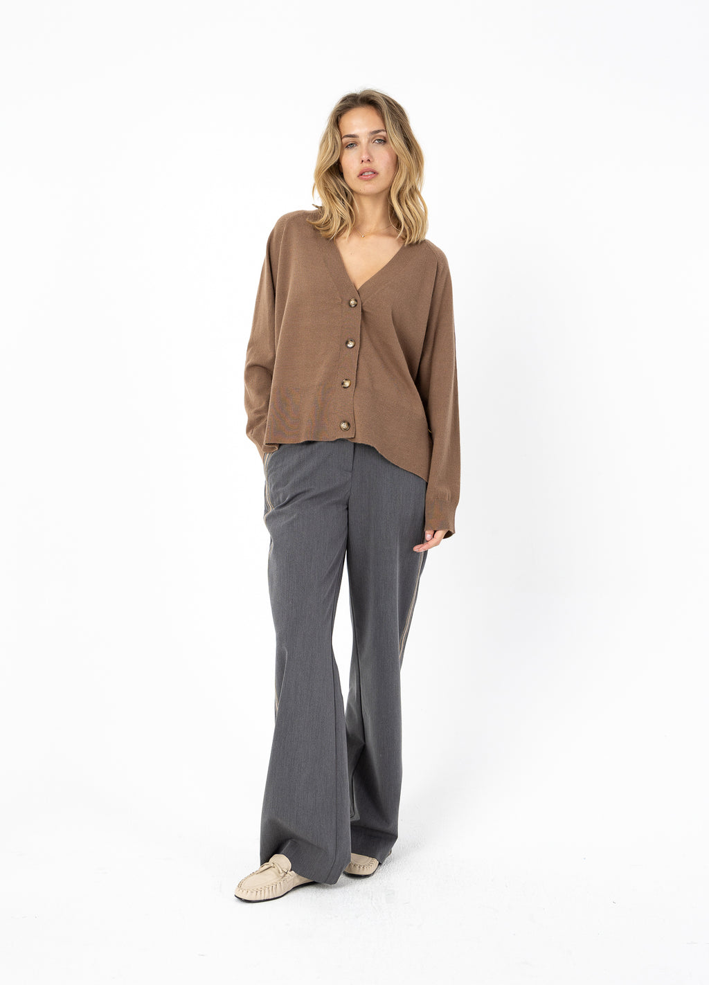 Het model is 173 cm lang en draagt maat S. Ze heeft een borstomtrek van 84 cm, een tailleomtrek van 65 cm en een heupomtrek van 96 cm.