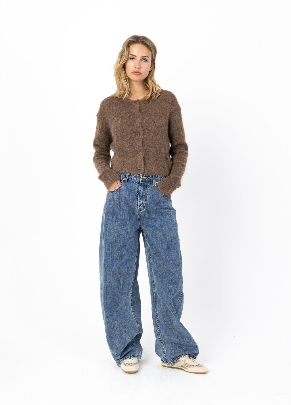 Het model is 173 cm lang en draagt maat S. Ze heeft een borstomvang van 84 cm, een tailleomvang van 65 cm en een heupomvang van 96 cm.