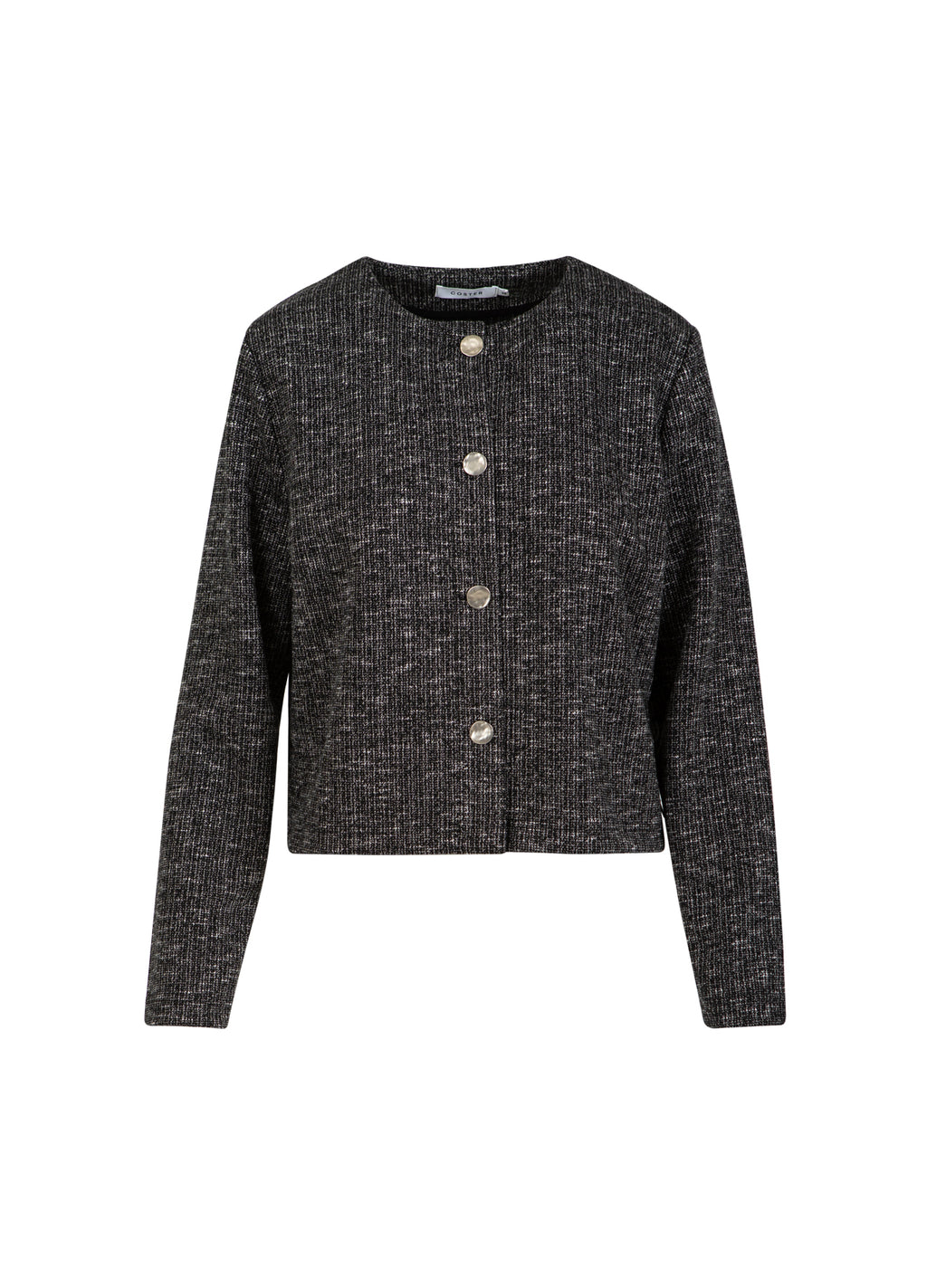 Het model is 182 cm lang en draagt maat S. Haar buste meet 82 cm, taille 61 cm en heupen 93 cm.
