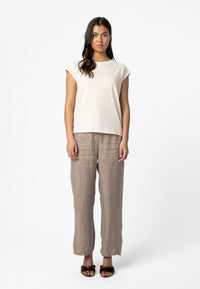 Het model is 176 cm lang en draagt maat S. Zij meet 82 cm rond de borst, 69 cm rond de taille en 92 cm rond de heupen.