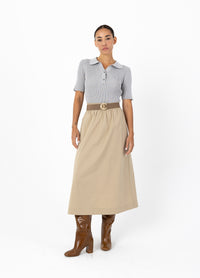 Het model is 173 cm lang en draagt maat S. Ze meet 84 cm rond de borst, 65 cm rond de taille en 96 cm rond de heupen.