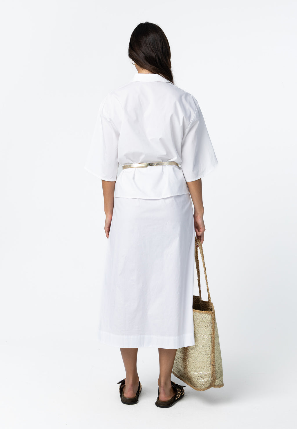 Het model is 176 cm lang en draagt maat S. Zij meet 82 cm rond de borst, 69 cm rond de taille en 92 cm rond de heupen.