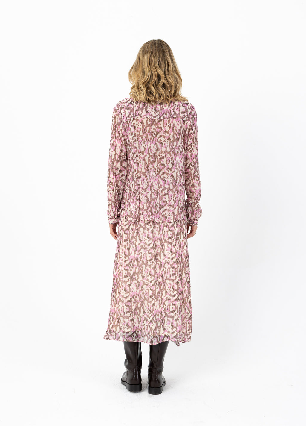 Het model is 173 cm lang en draagt maat S. Ze meet 84 cm rond de borst, 65 cm rond de taille en 96 cm rond de heupen.
