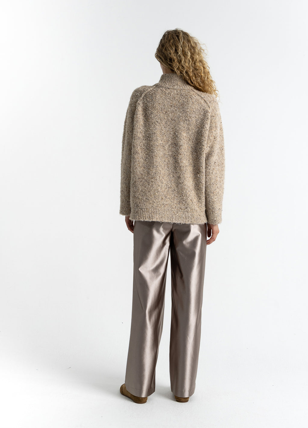 Het model is 182 cm lang en draagt maat S. Haar buste is 82 cm, taille 61 cm en heupen 93 cm.