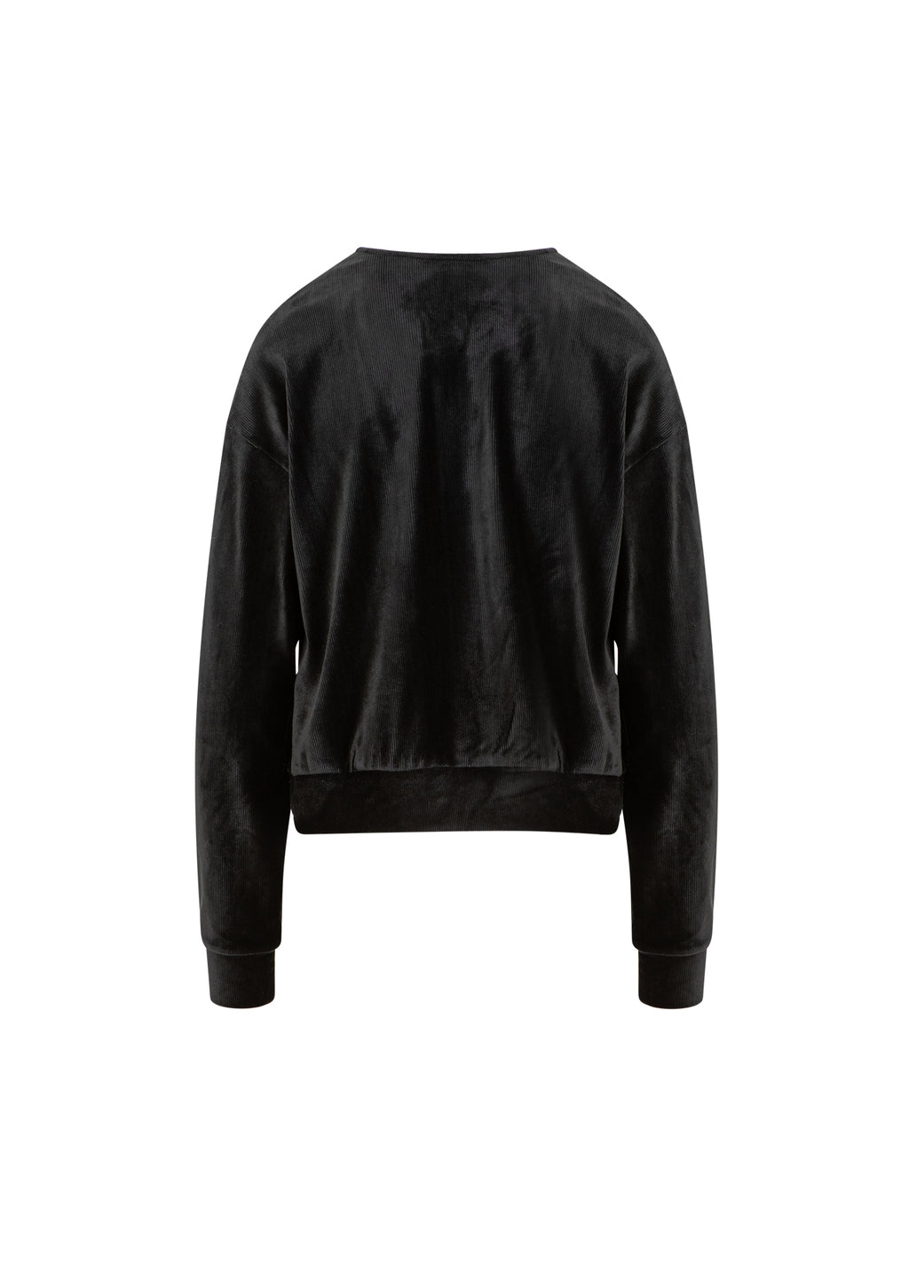 Het model is 182 cm lang en draagt maat S. Haar borstomvang is 82 cm, taille 61 cm en heupen 93 cm.